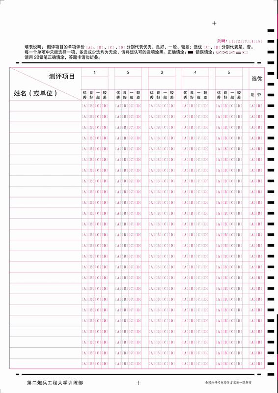 案例:第二炮兵工程大學現改名為:中國人民解放軍火箭軍工程大學,位于陜西省省會西安市,是中國人民解放軍重點院校,訓練部需要的答題卡并不是一般考試的答題卡,而是測評項目的答題卡。